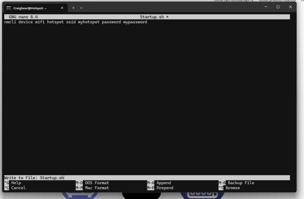 sudo nano /home/Craigbear/Startup.sh