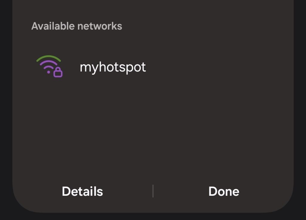 Use another wireless client, such as a laptop or smartphone, to connect to the network. Look for a network with a SSID matching <example-network-name>. Enter your network password, and you should connect successfully to the network. If your Raspberry Pi has internet access via an Ethernet connection or a second wireless adapter, you should be able to access the internet.