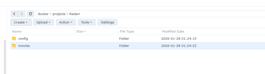 I have a main folder on the Synology system just for docker projects. create the following folders using filestation so my path for radarr will look like this