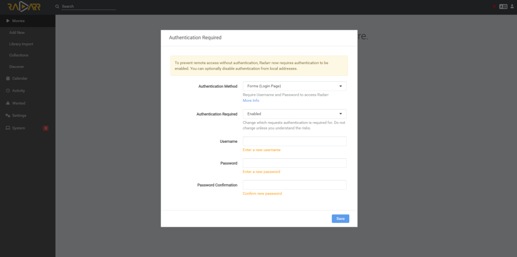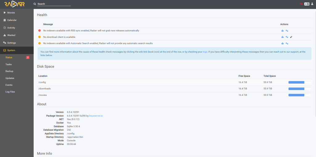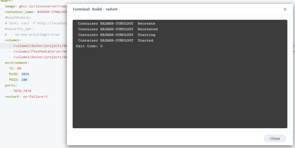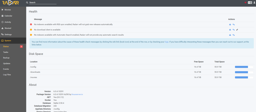 - /volume1/docker/radarr/movies:/movies:rw #If you want, you can change the following line /volume1/docker/radarr/movies with the path Location of your own Movie library.
