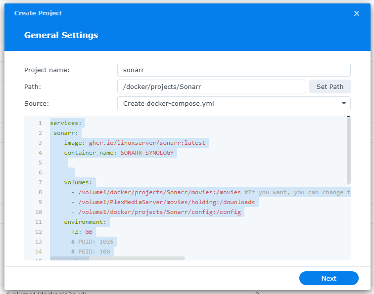 #- /volume1/PlexMediaServer/movies/holding:/downloads #If you want, you can change the following line /volume1/docker/Sonarr/downloads with the path Location of your Download folder.