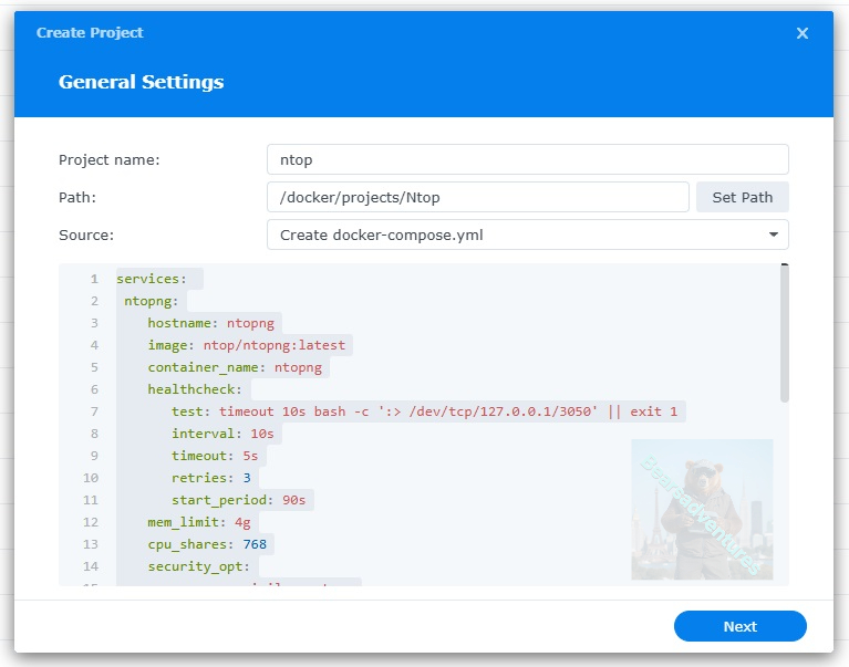 I have a main folder on the Synology system just for docker projects. create the following folders using filestation so my path for ntop will look like this