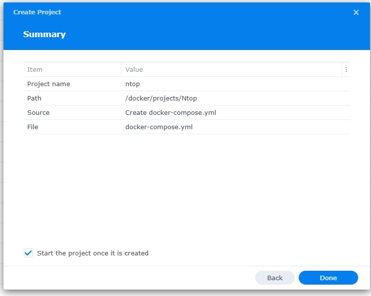 One last thing you can check to see if the docker is Green and showing no Errors, todo that just goto Container manager and on the left select Projects and ntop will be there Status Colum should be green if not you will need to trouble shoot.