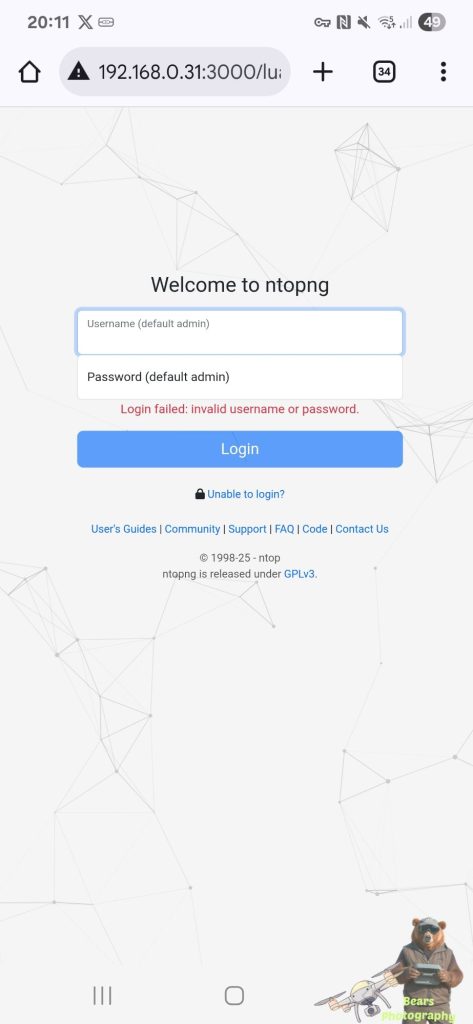 Type into your explorer your ntop IP Number and port number we setup. in my case 192.168.0.31:3000