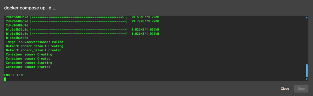 after pressing the up button on the dashboard, you should have the container now running