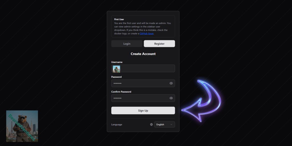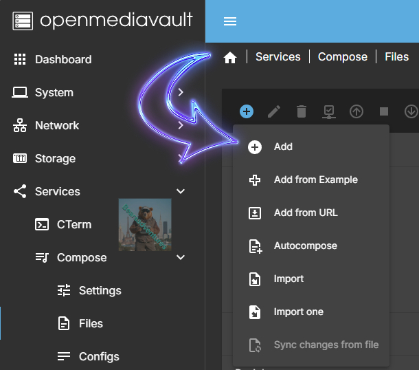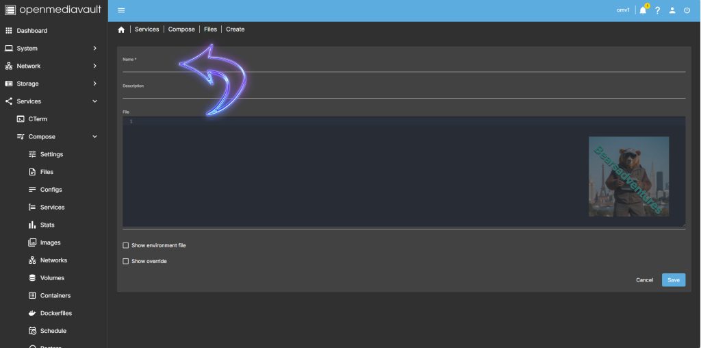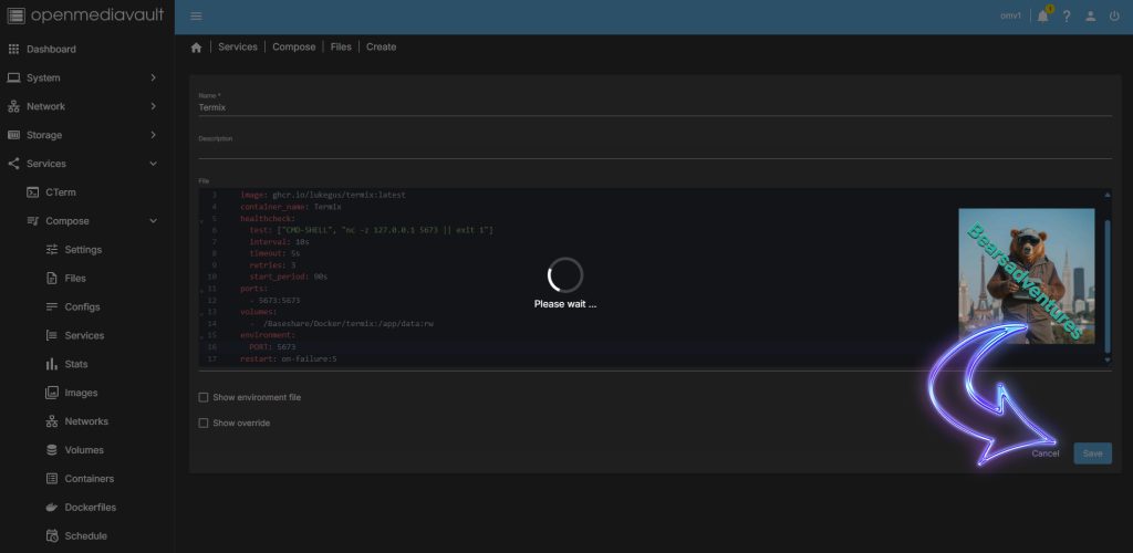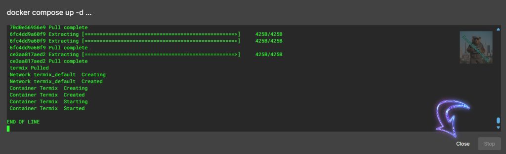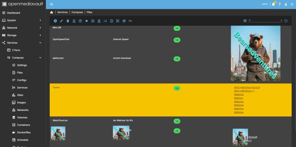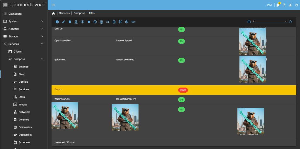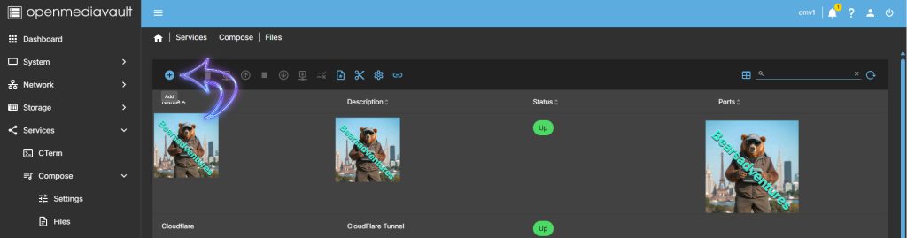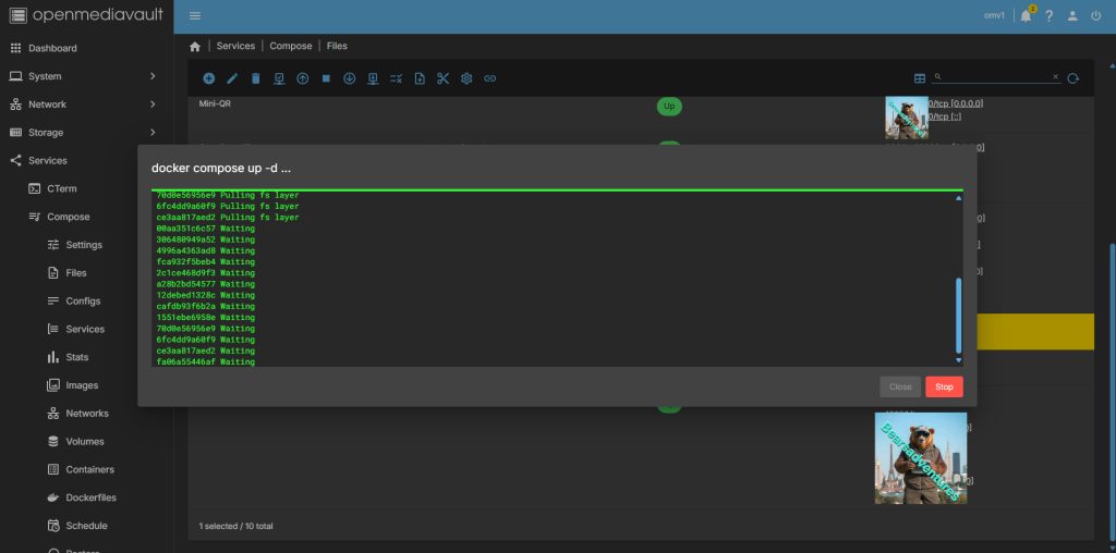 now select the Up arrow. now OMV Docker will Pull all the files needed from the internet.