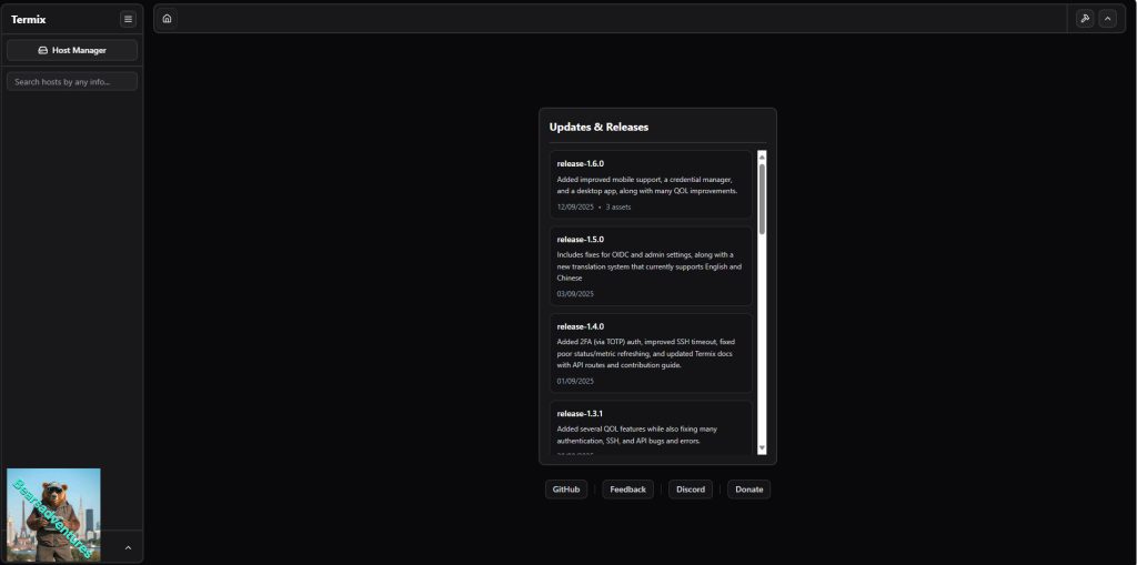 I am really happy with this Container Termix Saves ,e alot of time and Problems. I love how you can added multiple tervers to the Terminal manager.