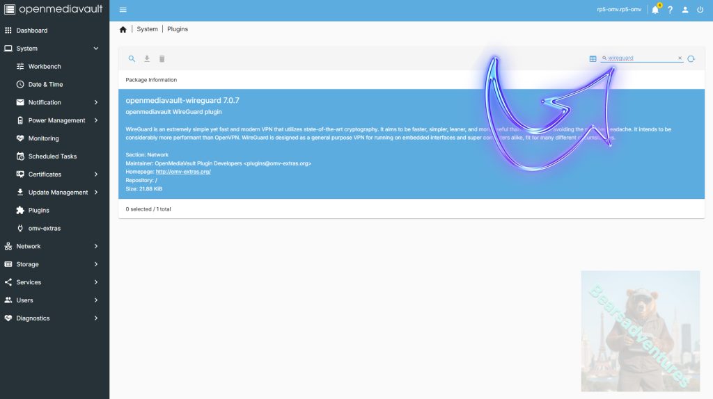 Now Type in Wireguard in the Search bar on the right hand side, and you will see the Plugin wireguard.