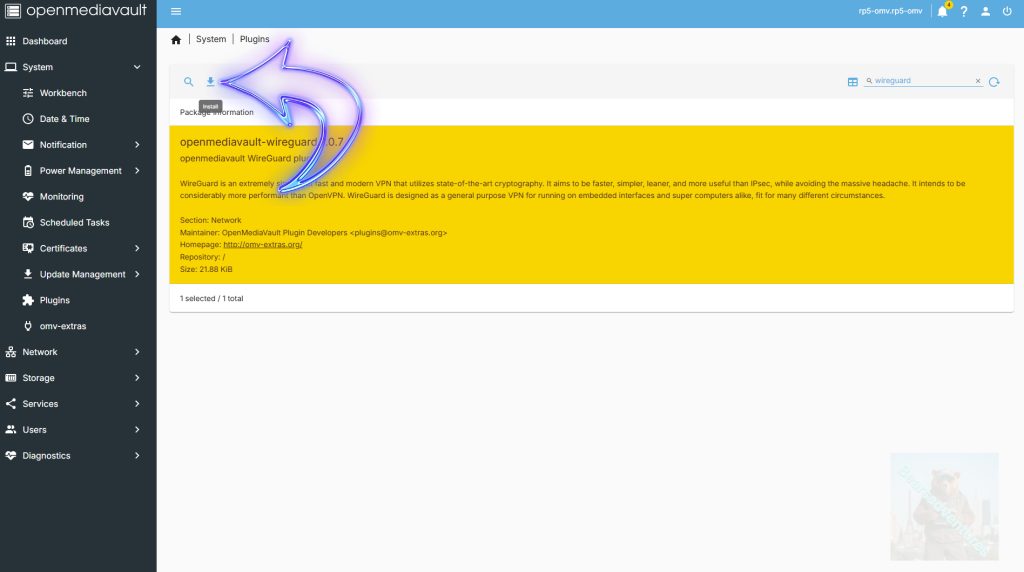 Select the Wireguard plugin and then press the down arrow to install the plugin.