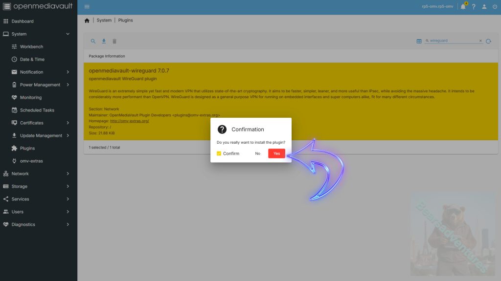 We Just need to hit Confirm and then yes to install the Wireguard plugin.
