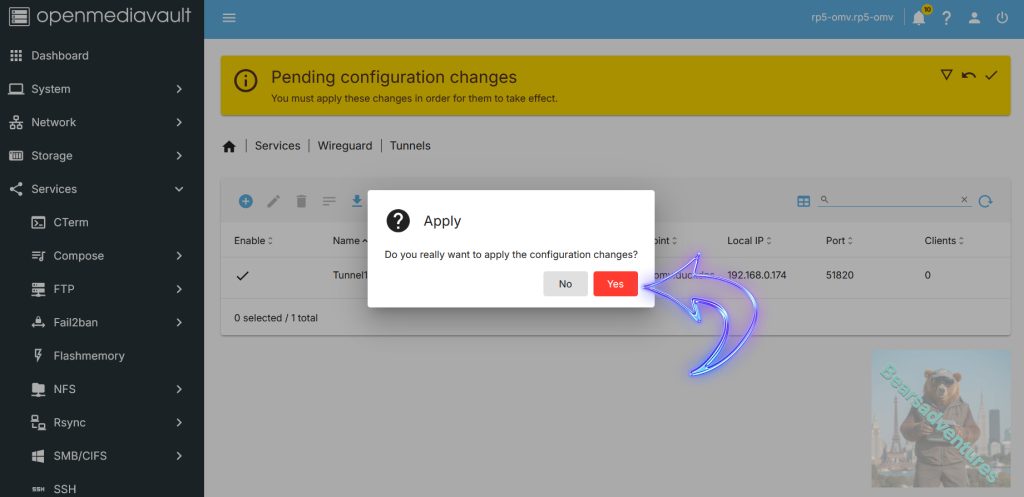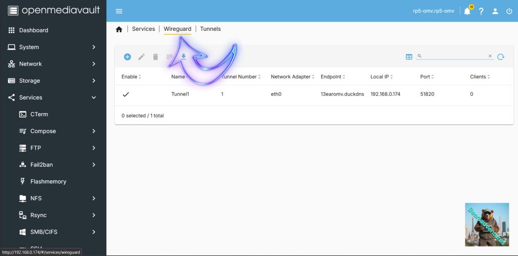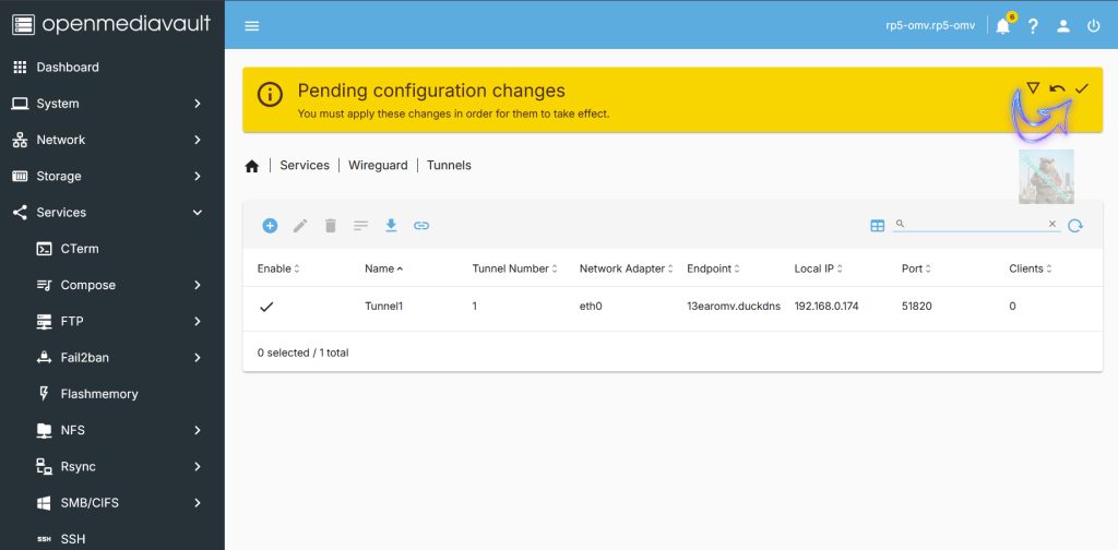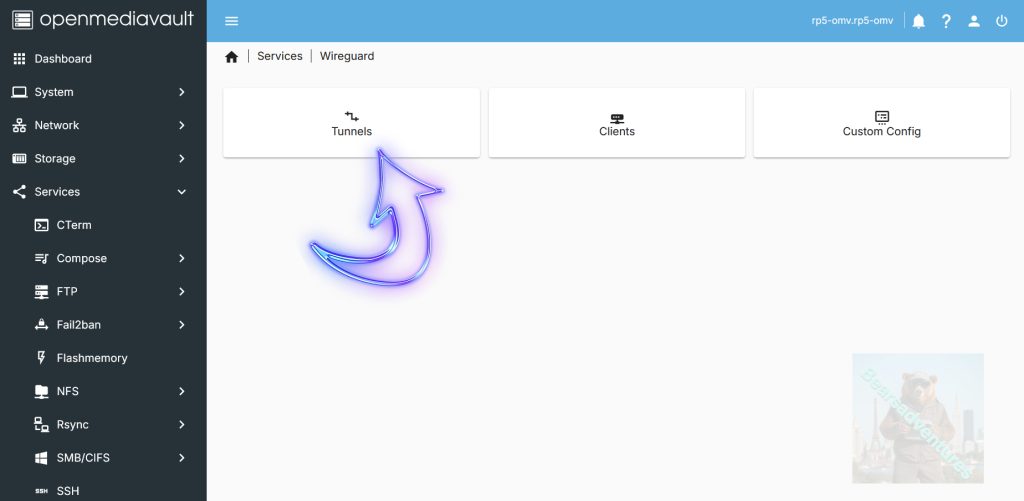 Now wireguard is installed its time to create the Tunnel to OMV. Select tunnels.