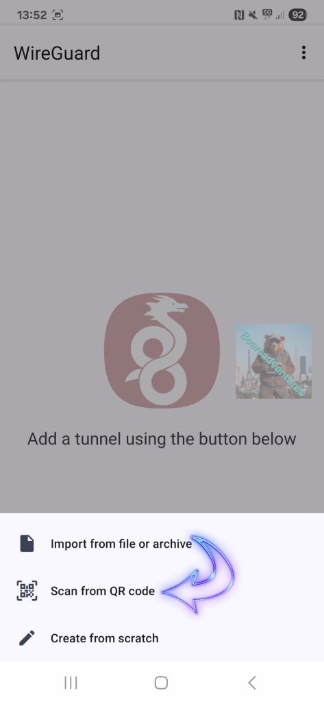 it is now time to install Wireguard app on your phone. i have installed the app on my android phone.