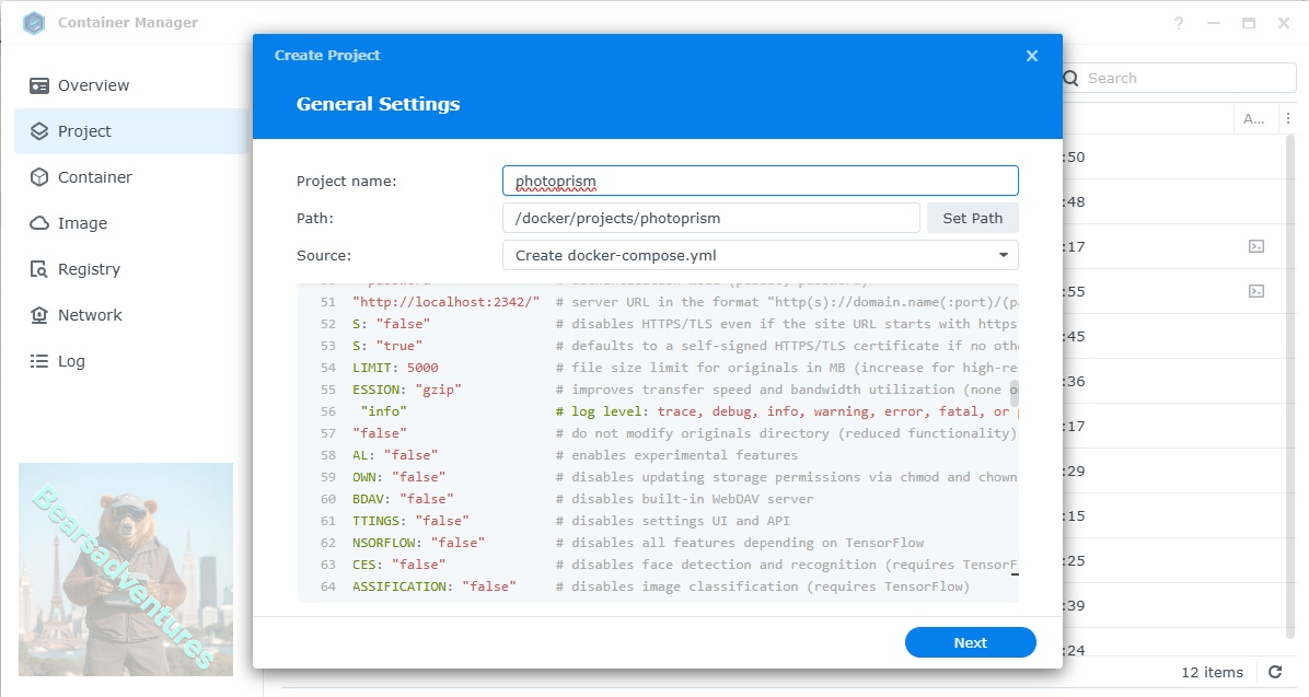now we have created the folders needed for the project we can go ahead and create the project in Container manager