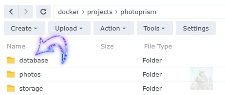 I have a main folder on the Synology system just for docker projects. create the following folders using filestation in the photoprism folder