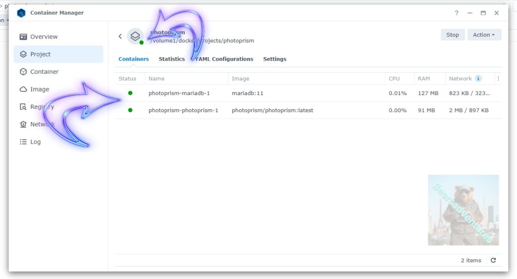 One last thing you can check to see if the docker is Green and showing no Errors, todo that just goto Container manager and on the left select Projects and photoprism will be there Status Colum should be green if not you will need to trouble shoot.