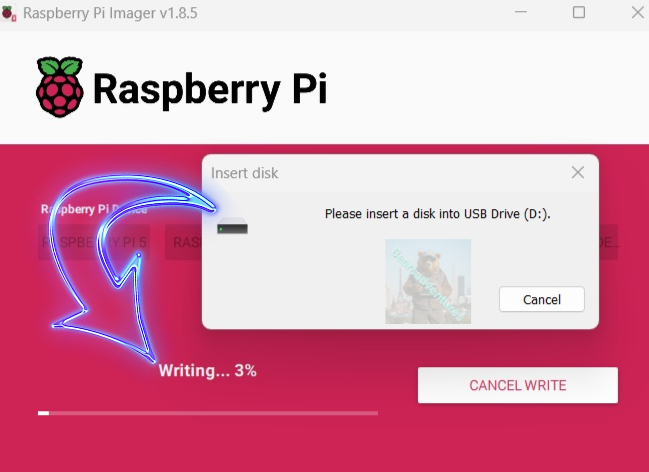 Select Yes, Now when the writing to the sdcard start you will get a Insert Disk dialog come up. dont worry, you do not need todo anything just wait.