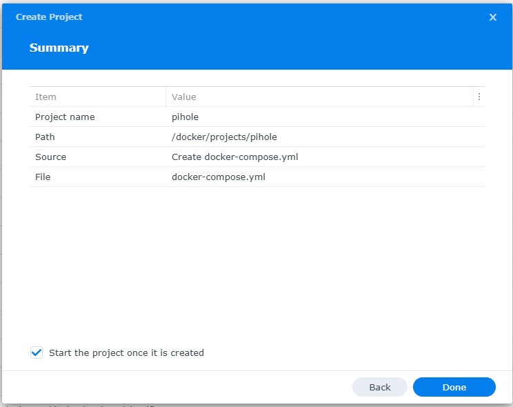now we have created the folders needed for the project we can go ahead and create the project in Container manager