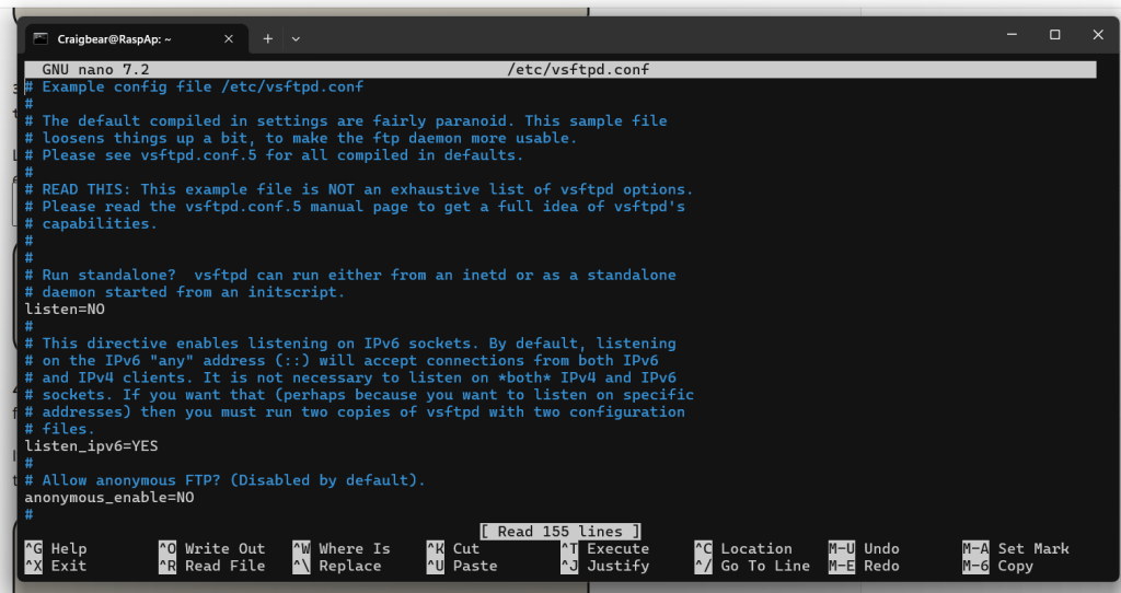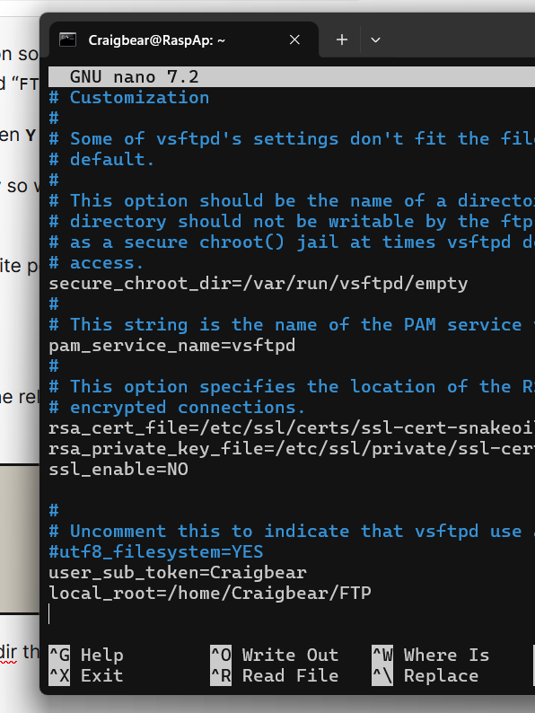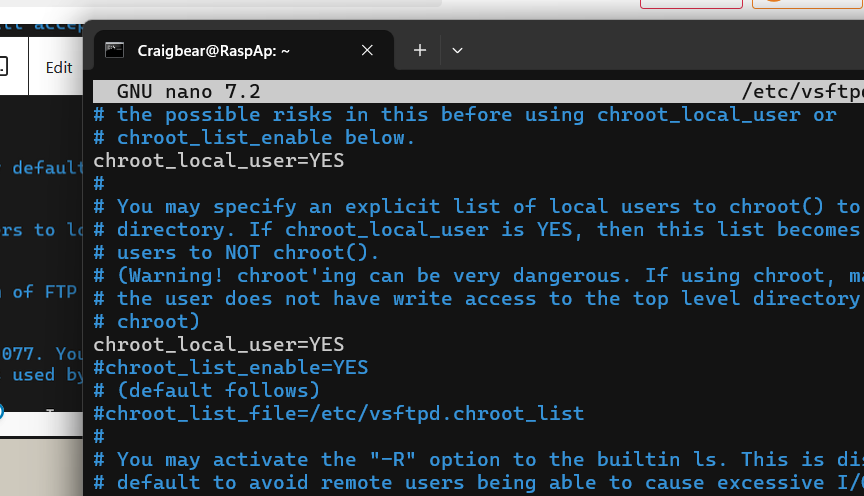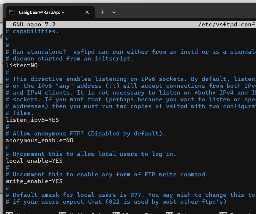 sudo nano /etc/vsftpd.conf