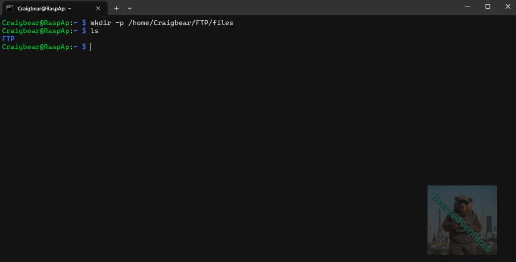mkdir -p /home/Craigbear/FTP/files