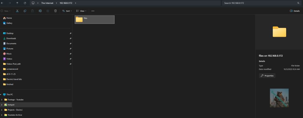 this Server is closed to my internal network only. i mounted the server as a FTP folder on my windows pc