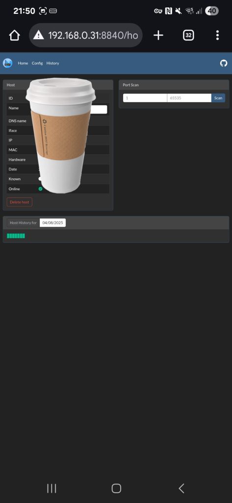 Lightweight network IP scanner. Can be used to notify about new hosts and monitor host online/offline history.