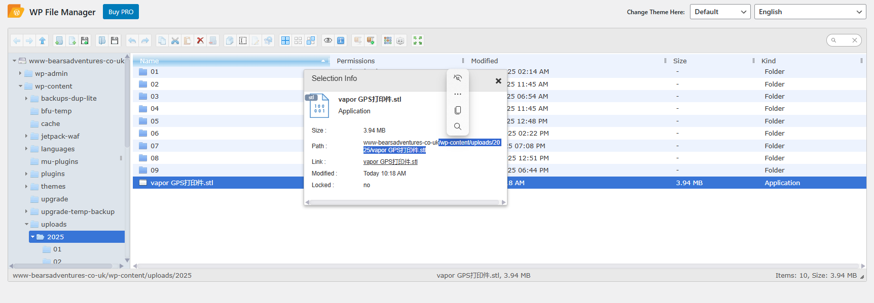 to get the file path, right mouse on the file and press info. you need the file path after your website. in my case below.