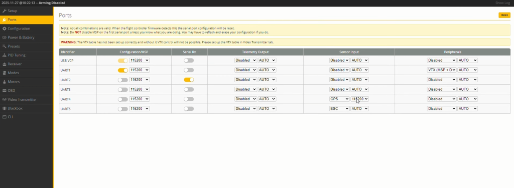 After all the soldering is complete, I decided to test the GPS Module before putting everything back together again. Remember to plug in a battery, but before you do use a smoke stopper aswell, Last thing we want is a Dead FC board. I did try and plug in the usb cable first but no joy. you also need to remember to turn on the Uart4 port for GPS.