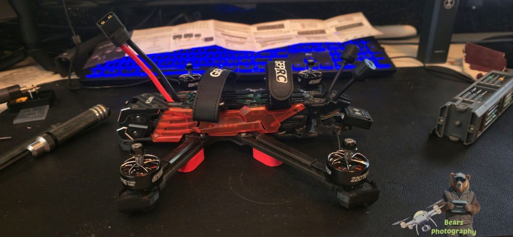 So now lets get the D5 Hood off and make a start with seeing what we are working with. Start by moving the 10 screws holding the top of the body on. and them removing 2 screws under the body to release the side frame parts. the drone should now look like the middle picture below. Now remove the 4 bolts holding the FC board onto the frame of the drone.